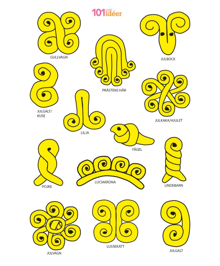 Tror bestämt att jag ska baka lussekatter till lucia. Eller varför lussekatter? Det finns ju så många andra former att välja. De som mamma brukade baka kallas tydligen för ”gullvagn” och jag blir förtjust i att göra julbockar när jag ser figurerna här under. De kommer från tidningen 101 nya idéers hemsida.