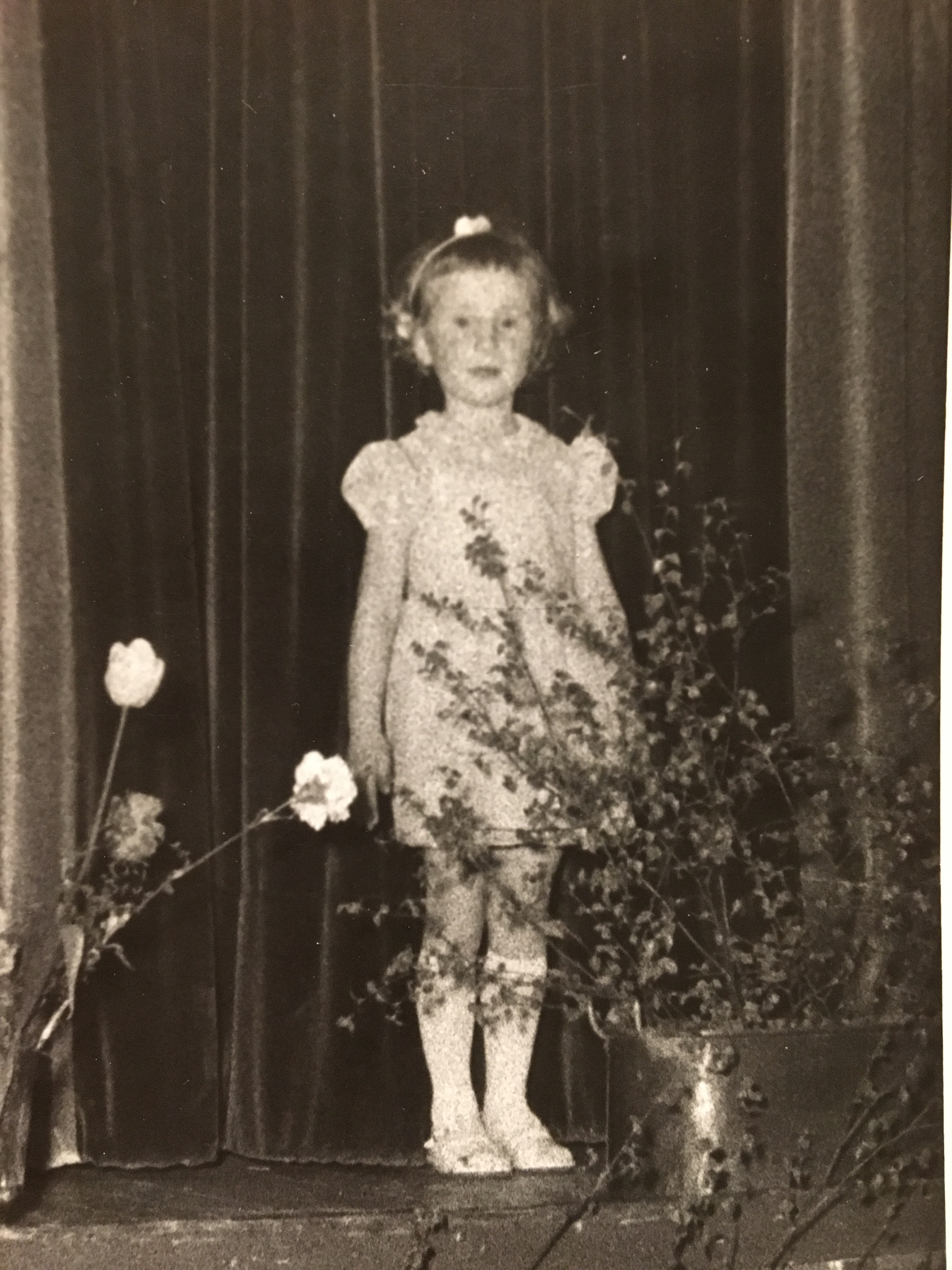 På bilden här under är jag 5 år. Jag har klivit upp på scenen i Knutbygården och sjunger på Kerstin & Göstas bröllop, eller kanske var det Gun & Kalles? De två bröllopen låg tätt i tiden och jag var näbb på båda. Och jag misstänker, men minns inte, att jag nog uppträdde på båda.