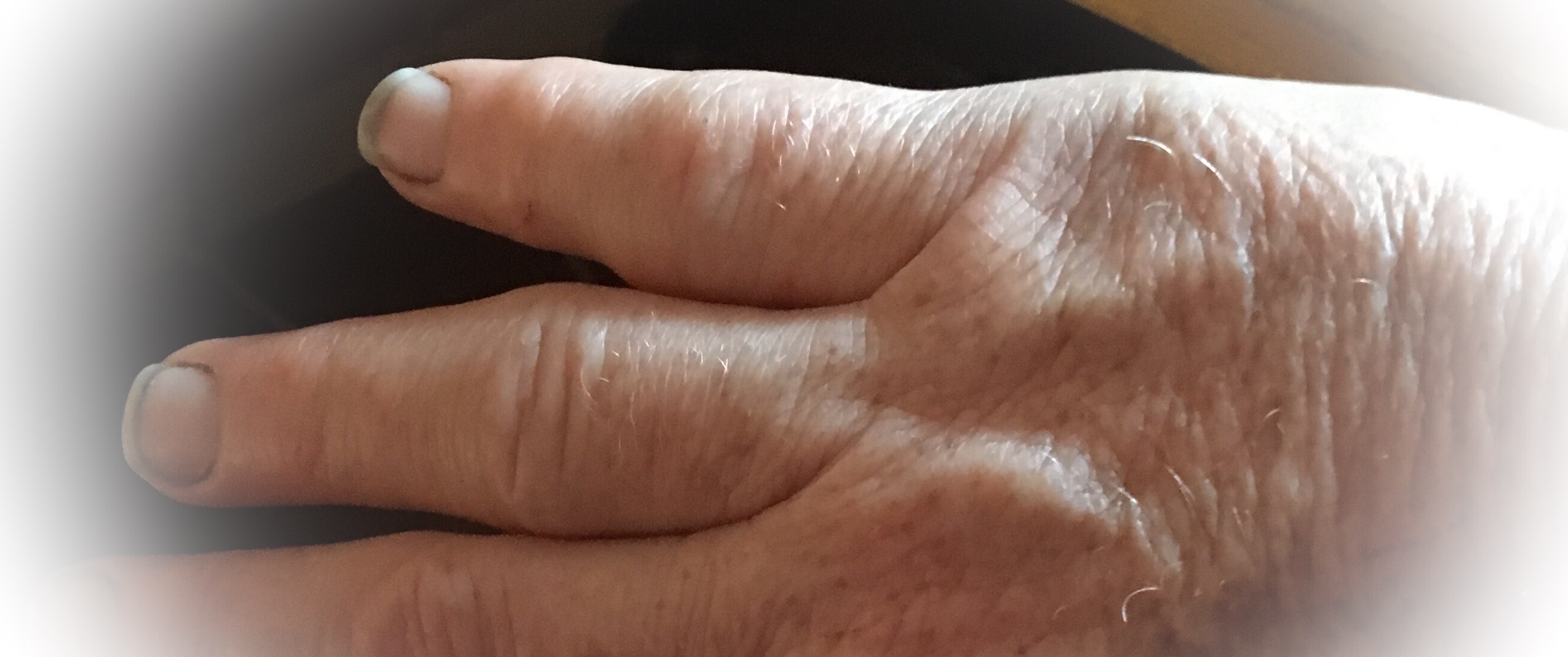 Det är många år sen jag kunde ha mina ringar. Numera går det inte att få på dem ens på lillfingrarna. Ibland blir jag galet trött på mina knubbiga fingrar. Framförallt mellanlederna, men också ytterlederna är breda och stela. Högerhanden är oftast svår att stänga. Och hur ofta har jag inte förlorat greppet om saker och ting med just den handen.