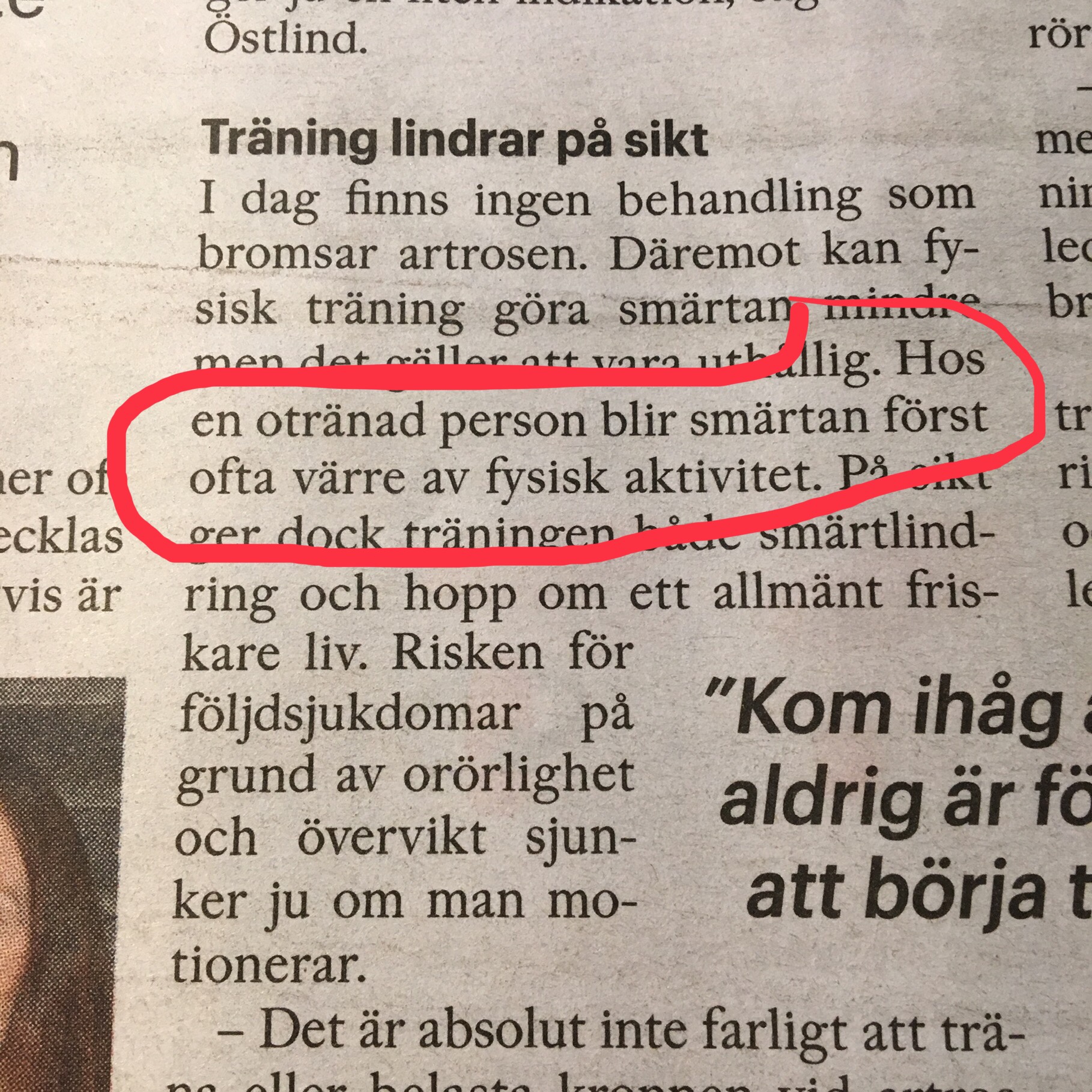 Fast i bakhuvudet mal ju något annat. Typ att ” det gick väldigt fort från det att höftartrosen gav sig till känna och värken blev så olidlig att operation var det enda tänkbara”.