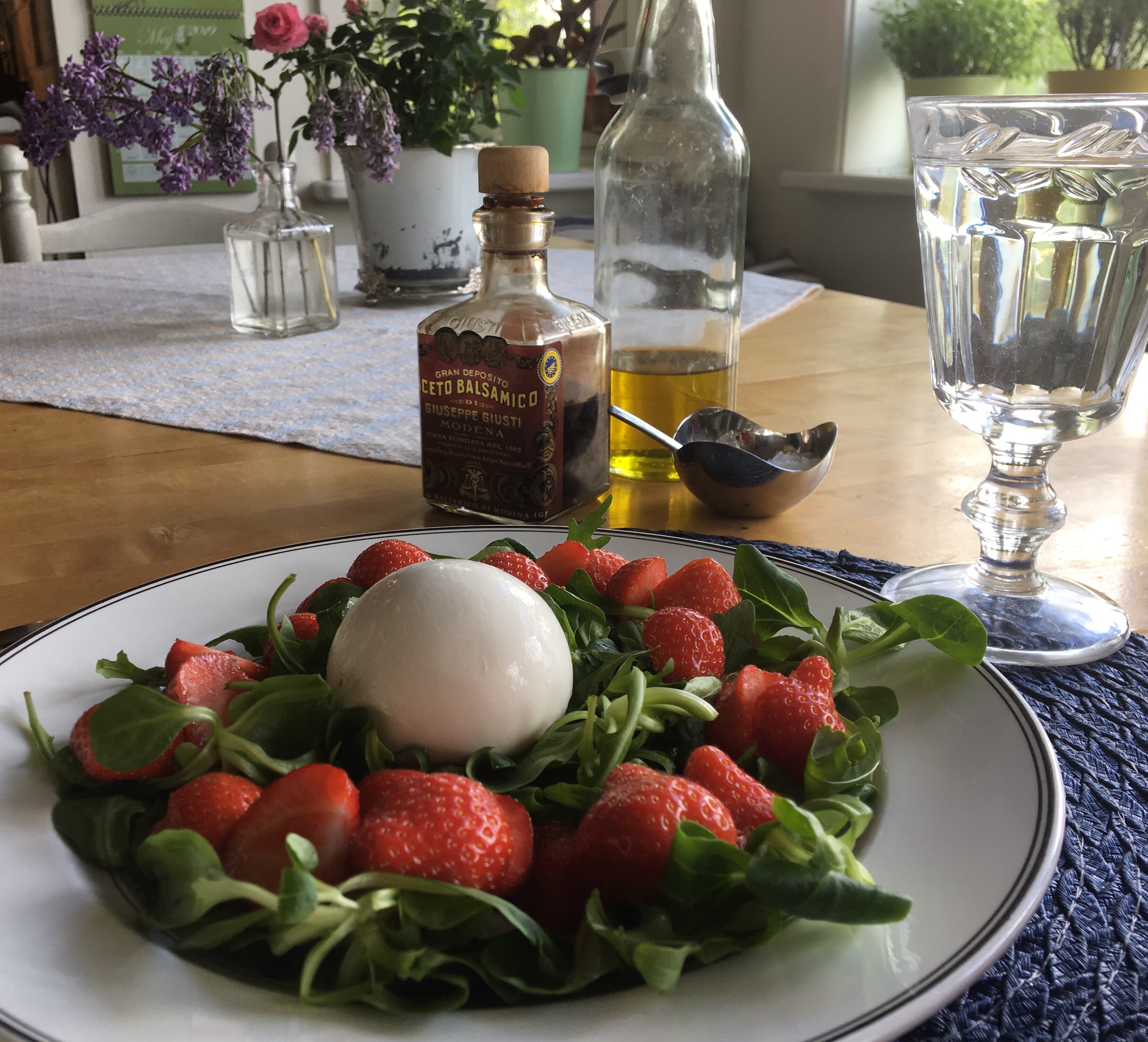 Burrata, jordgubbar, ruccola, machesallad, olja och balsamvinäger; är det verkligen medicin?