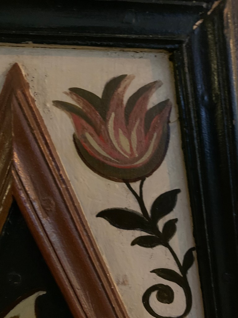 När jag kommer hem och ser det gamla 1700-talsskåpet förstår jag. Tulpanerna som en okänd gårdsmålare smyckade skåpet med för flera hundra år sen är väldigt lika tulpanerna på tyget jag köpte.