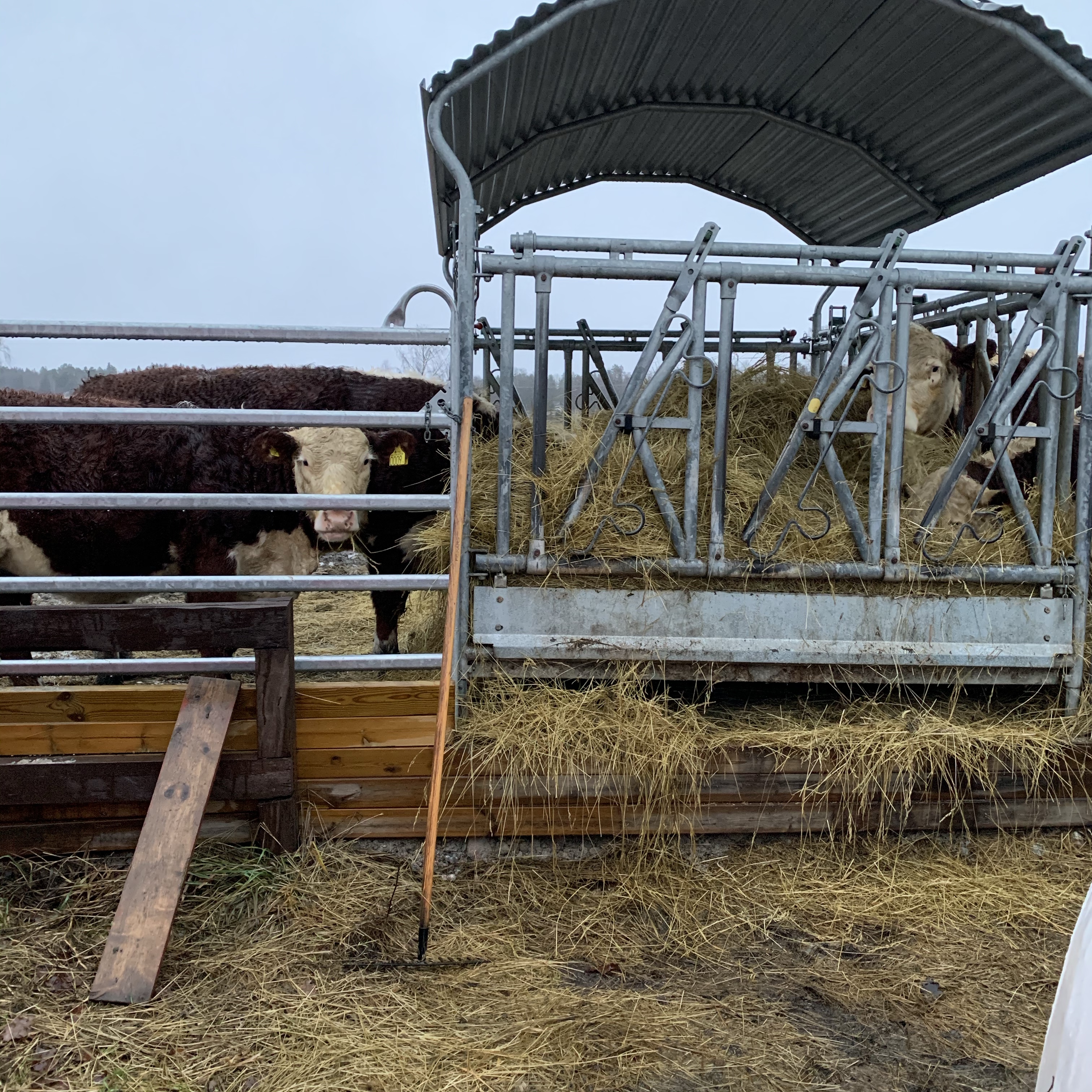 Däremot är jag glad över att deras matplats står på en grusad betongplatta så att de inte behöver stå nedsjunkna till knäna när de äter. Istället kan de stå där och vifta lite på klövarna om de vill. Vilket jag inte kan tänka mig att korna vill… men det känns bra för en människa.