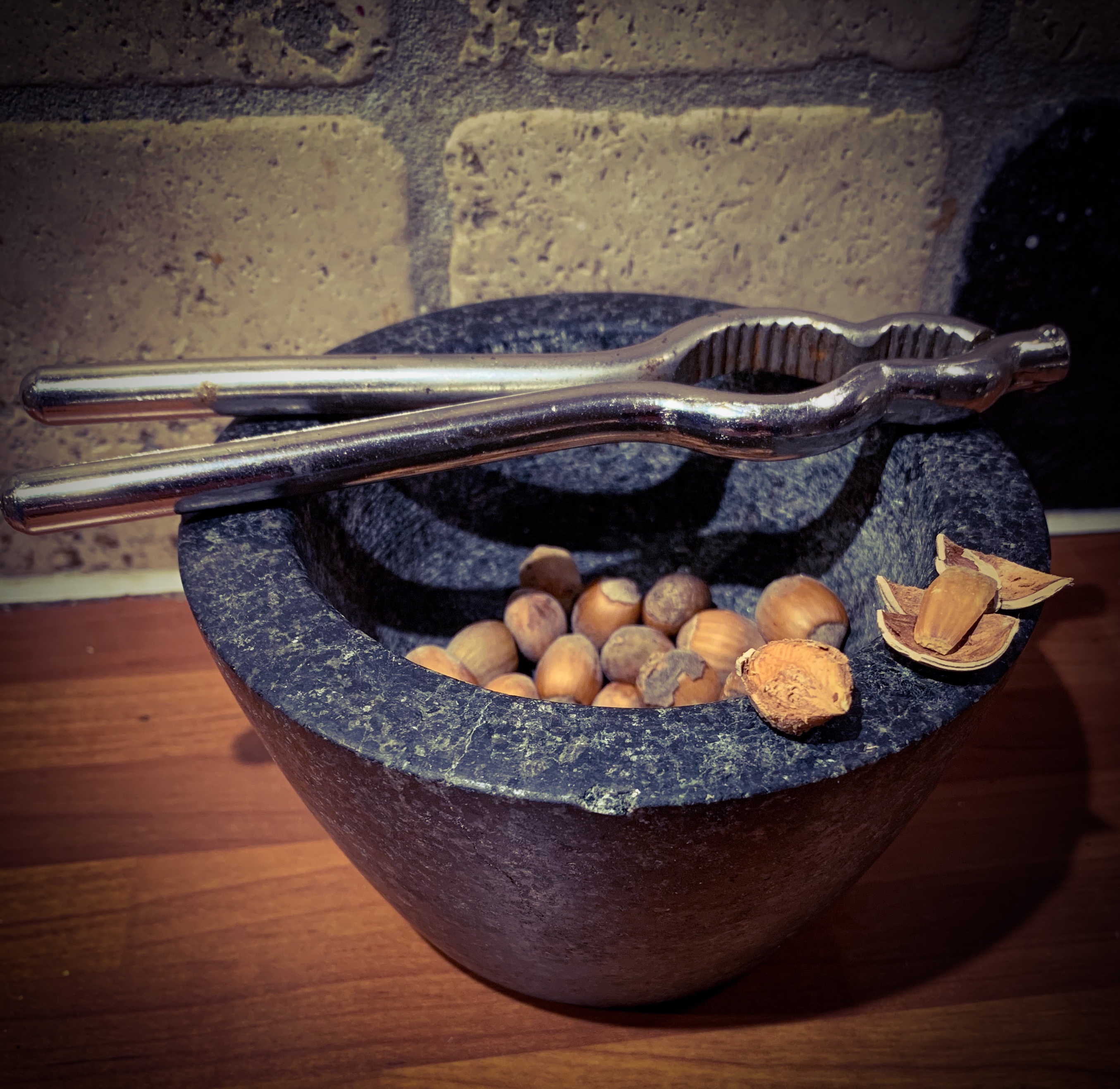 Näven hamnade så småningom i morteln i köksfönstret. Och jag har muttrat lite varje gång jag använt morteln och behövt hälla nötterna i ett glas. Men sen har de hamnat tillbaka i morteln igen.