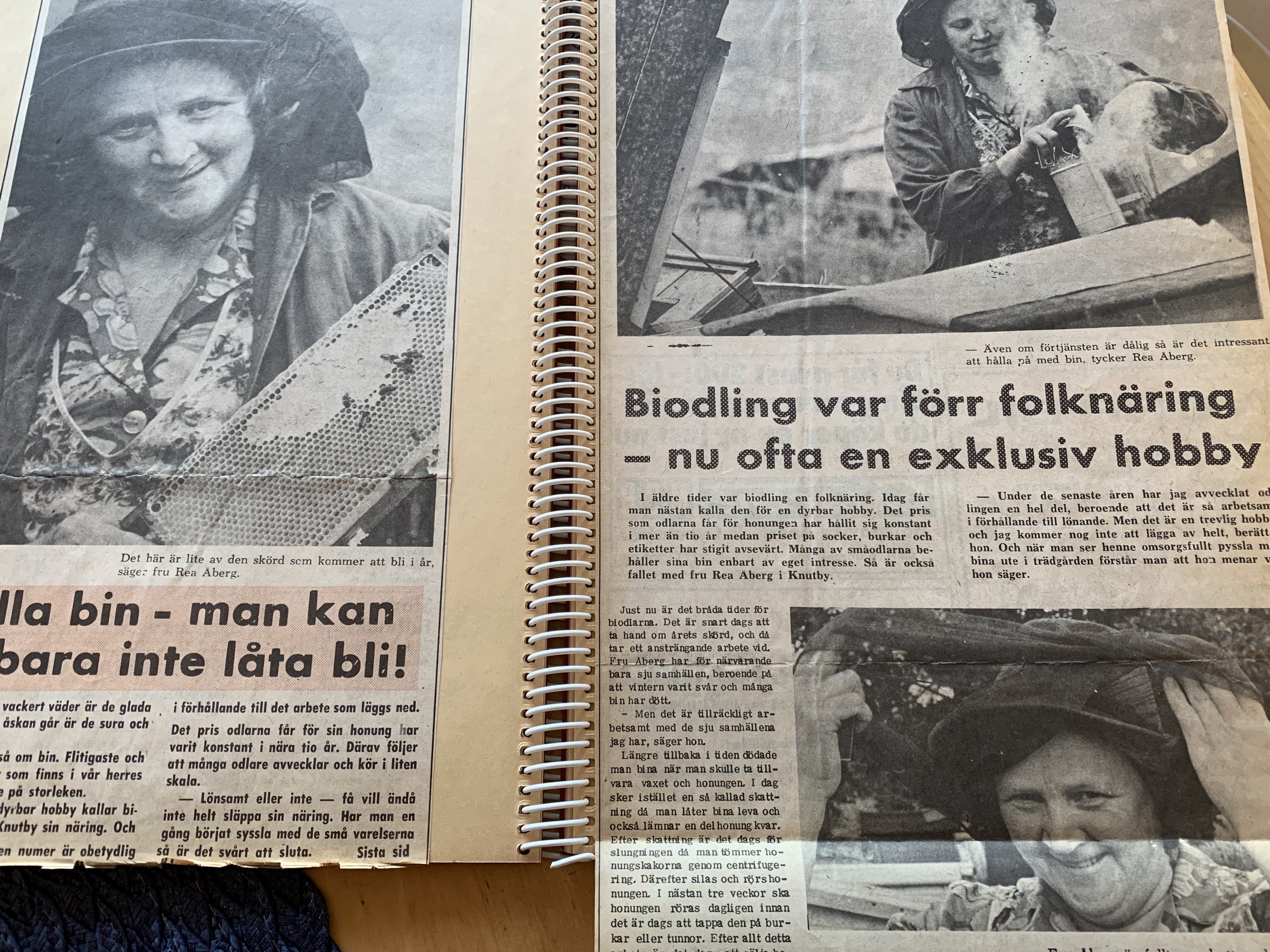 En av de trevligaste artiklarna jag hittar, när jag bläddrar i min urklippsbok, handlade om fru Rea Åberg och hennes biodling. Jag gissar att det var ett typiskt onsdagsreportage. Rea var god vän med mamma och pappa, och kanske var det i kontakten med henne som också pappas biodlingsintresse föddes.